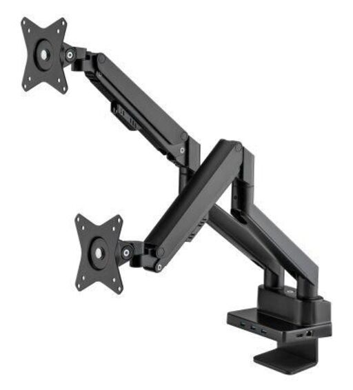 - I bracci articolati con doppio snodo supportano due monitor da 17 a 32 fino a 9 kg ciascuno