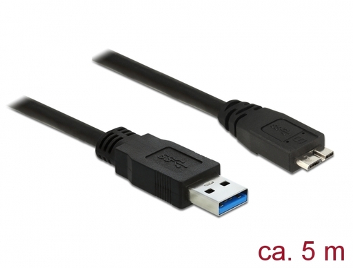 This USB cable by Delock enables the connection between a device with a USB 5 Gbps Type Micro-B connector and a PC or a laptop equipped with a free USB port.