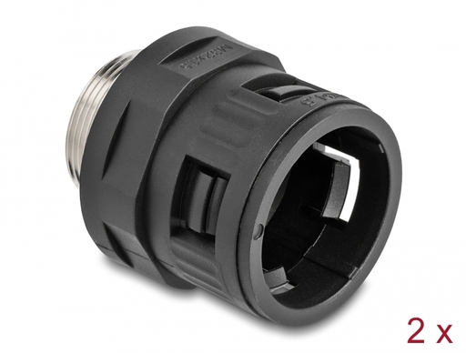 This conduit fitting by Delock can be used for easy mounting on corrugated protective conduits. The fitting has a high level of sealing, tensile strength and resilience. In combination with the Delock protective conduit 60460, it provides a secure and firm hold.