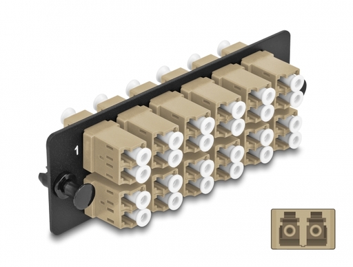 This panel by Delock is equipped with twelve LC Duplex couplers and is suitable for installation in 19 fiber optic HD (High Density) patch panel by Delock (66924). With the LC Duplex couplers, fiber optic male connectors can be easily connected to each other.