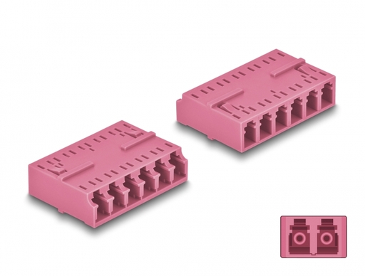 Con questo accoppiamento LC Hexaplex Delock, due connettori maschio in fibra ottica possono essere facilmente collegati tra loro. L'accoppiatore consente una connessione diretta al cavo in fibra ottica e può essere utilizzato per applicazioni HD (High Density).
