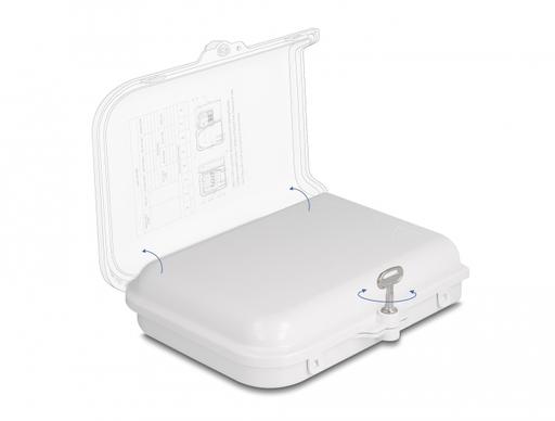 Questa scatola di distribuzione bloccabile in fibra ottica Delock può essere utilizzata per il montaggio a parete e serve come custodia protettiva per cavi ottici e accoppiamenti. La scatola di distribuzione può ospitare fino a otto accoppiamenti SC Simplex o LC Duplex.