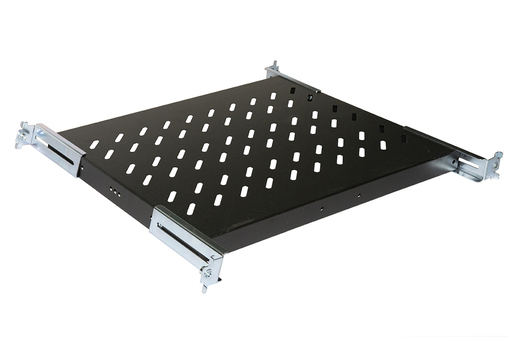 Mensole 1 Unità per armadi rack in acciaio, si attaccano ai montanti laterali anteriori e posteriori. La mensola è universale, può essere montata su tutti gli armadi a 4 montanti di tutte le marche compatibilmente con la profondità. I ripiani sono regolabili in profondità, e si adattano a montani distanti da 57 a 66 cm, quindi indicativamente in armadi profondi 800 mm. I ripiani hanno dei fori in modo da agevolare la circolazione dell’aria e il raffreddamento. Capacità di carico 50 Kg. Le viti per il montaggio dei ripiani sono incluse. Colore nero RAL9005