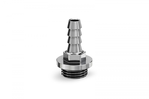 EK-Pro G1/4 Barb Fitting 6mm - Nickel is a soft-tube barb fitting designed for use with flexible soft tubing such as PVC, EPDM, Norprene, silicone, or any other type of compatible flexible tube. It pairs ideally with the EK-Pro Tubing 6/12mm Reinforced EPDM 1m - Black.