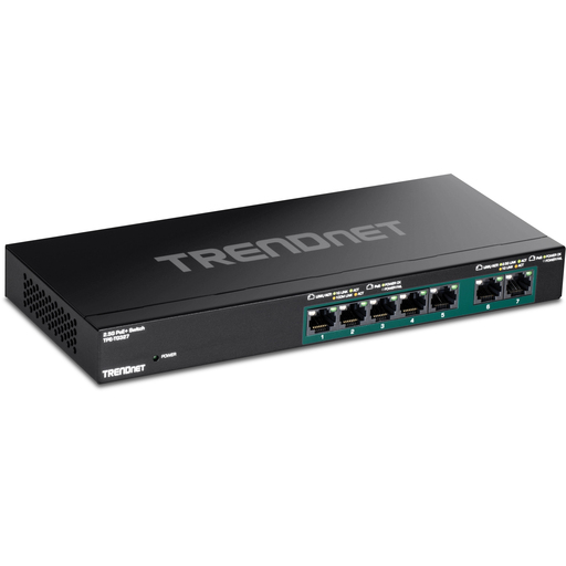 TRENDnet’s 7-Port Multi-Gig PoE+ Switch, model TPE-TG327, is an affordable 2.5G PoE+ switch that provides advanced high-bandwidth performance, ease of use, and reliability. The TPE-TG327 multi-gig switch offers two dedicated 2.5G PoE+ ports and five dedicated 1G PoE+ ports for high-speed network connections with a 20Gbps switching capacity. Having a sturdy compact metal housing and fanless design, the multi-gig PoE+ switch is a cost-effective solution for high-speed network connections. A 70W total PoE power budget on this affordable multi-gig PoE+ switch supplies up to seven PoE+ devices with up to 30W per port.