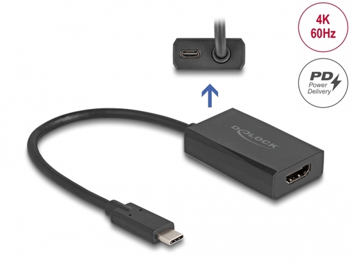 This adapter by Delock enables the connection of a USB Type-C (DisplayPort Alternate Mode) monitor to a free HDMI interface of a PC or laptop.