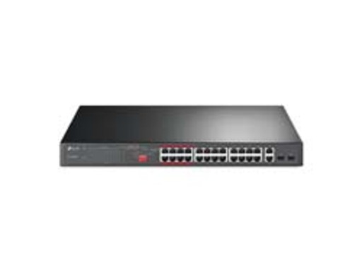 Switch Desktop Unmanaged 24 porte PoE+ 10/100Mbps, 2 porte Gigabit + 2 porte Gigabit SFP ConnettivitÓ versatile - 24 porte RJ45 PoE+ 10/100 Mbps, 2 Porte RJ45 Gigabit 10/100/1000Mbps, 2 Porte combo Gigabit SFP Power Budget - Supporta alimentazione PoE fino a 30W per ogni porta PoE e 250W per tutte le porte PoE Extended Mode - Trasmissione alimentazione e dati PoE fino a 250m, ideale per sistemi di videosorveglianza Priority Mode - Assegna prioritÓ di traffico alle porta 1-8, per la massima qualitÓ delle performance di applicazioni sensibili, come lo streaming di video monitor Isolation Mode - Basta un click per creare un traffico dati separato per la massima sicurezza Plug & Play - Non richiede configurazione o installazione