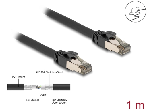 Il robusto cavo di rete offre una maggiore protezione contro i danni e le influenze esterne come umidità, polvere o roditori dannosi. Nonostante la guaina metallica, il cavo rimane pieghevole e altamente flessibile.