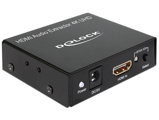 This adapter by Delock can be used to extract the audio signal from an HDMI transmission. While the video signal is displayed on a TV or monitor, the audio signal can be sent digital (S/PDIF) or analogue (stereo) to other devices, such as headphones or a surround receiver.
