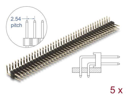 40 Pin, Pitch 2.54 Mm, 2-row, Angled, 5 Pieces