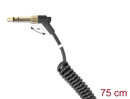 Angled connectors 135- Furthermore, both stereo jack connectors are angled by 135-, in case the existing stereo jack female port is difficult to access.