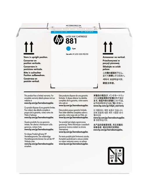 Ideale per tipografie grandi e molto grandi che producono pubblicità commerciale, cartelloni per esterni, illustrazioni per eventi e mostre, grafica per veicoli e decorazione di interni. Le cartucce di inchiostro HP 881 Latex offrono elevata qualità dell'immagine e coerenza dei colori su una vasta gamma di supporti. Espandi ulteriormente la tua attività investendo in applicazioni durevoli e di qualità. Differenzia la tua offerta e contribuisci a conseguire gli obiettivi di tutela ambientale con gli inchiostri HP Latex a base di acqua.