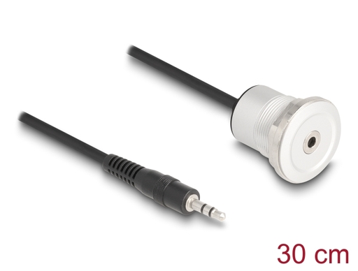 This cable by Delock can be used e.g. for installation in a panel or housing with a suitable opening. It can also be used to extend and connect various devices with a 3.5 mm audio jack connection.