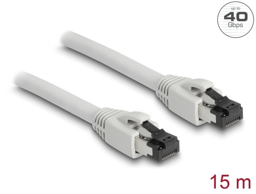 This network cable by Delock can be used to connect various devices and is suitable for 40GBASE-T Ethernet applications with a frequency of 2 GHz and a data transfer rate of up to 40 Gbps.