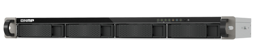 QNAP NAS - 4-Bay quad-core 2.0 GHz short-depth 1U rackmount NAS with 100W power supply, 4GB RAM (not expandable), SATA 6Gb/s, 2 x 2.5 GbE LAN, Container Station.