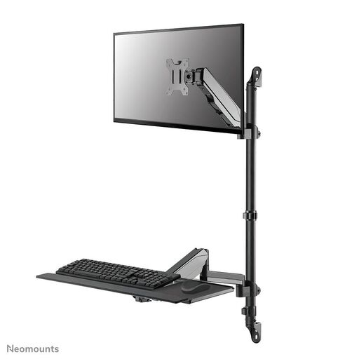Neomounts WL90-325BL1 è una postazione di lavoro a parete full motion, regolabile in altezza per schermi fino a 32", tastiera e mouse. Il supporto può sostenere schermi fino a 9 kg (curvo: 6 kg), mentre il vassoio per la tastiera può sostenere fino a 1 kg. 1 kg. La versatile tecnologia di inclinazione (70°), rotazione (360°) e perno (180°) consente al braccio del monitor di cambiare qualsiasi angolo di visione per sfruttare appieno le capacità dello schermo. Il vassoio per la tastiera include un supporto per i polsi e un tappetino per il mouse per un comfort ottimale.