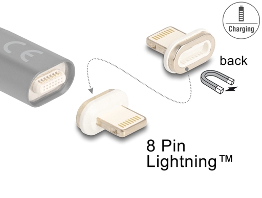 This magnetic adapter by Delock with 8 pin Lightning male interface can be used as accessory or replacement for the following Delock products: