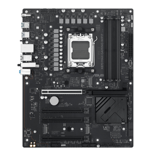 "ASUS X870 MAX GAMING WIFI7. Produttore processore: AMD, Presa per processore: Socket AM5, Processori compatibili: AMD Ryzen 7000 Series, AMD Ryzen 8000 Series, AMD Ryzen 9000 Series. Tipi di memoria supportati: DDR5-SDRAM, RAM massima supportata: 256 GB, tipo di slot di memoria: DIMM. Interfacce dell'unit di archiviazione supportate: M.2, SATA III, Tipi di unit di archiviazione supportate: HDD & SSD, Livelli RAID: 0, 1, 5, 10. Connettore USB: USB tipo A, USB tipo-C. Tipo di interfaccia Ethernet: 2.5 Gigabit Ethernet, Wi-Fi standard: Wi-Fi 7 (802.11be) Design del PCB a 8 strati