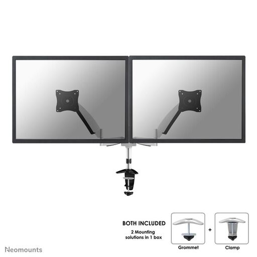 Questo braccio porta monitor NewStar, modello FPMA-D950D consente di collegare due schermi LCD/LED/TFT su di una scrivania con la modalità di fissaggio su piano attraverso un morsetto o vite centrale (entrambe sono incluse).\n\nUtilizzate un braccio porta monitor per sfruttare pienamente le capacità del vostro schermo. Il braccio è facile da regolare in altezza e profondità. È inoltre possibile inclinare lo schermo in senso verticale, orizzontale e farlo ruotare; questo crea la posizione ergonomica di lavoro ideale riducendo il rischio di mal di schiena e al collo. I cavi possono essere collocati sulla parte inferiore del braccio.\n\nIl supporto FPMA-D950D ha tre punti di articolazione ed è adatto a schermi fino a 27" (69 cm) con una capacità massima di trasporto di 18 kg (9 Kg per ogni schermo). Questo prodotto è adatto per schermi con fori VESA modello 75x75 o 100x100 mm. Per una diversa (più grande) foratura, si può combinare con una delle nostre piastre di adattamento VESA.