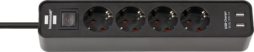 Extension Socket Ecolor with USB-Charger 4way black/black 1.5m H05VV-F3G1.5 with switch