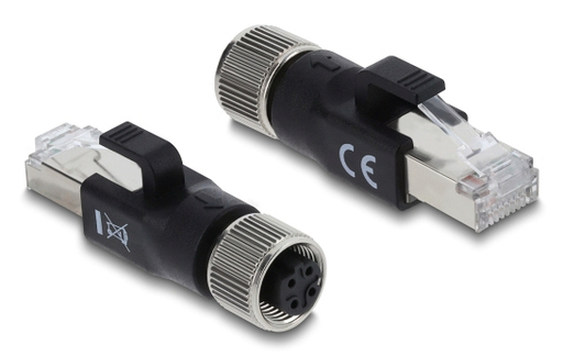 This industrial Ethernet adapter by Delock can be used to connect various components with M12 connectors, e.g. for industrial cameras, industrial Ethernet, or fieldbus systems.