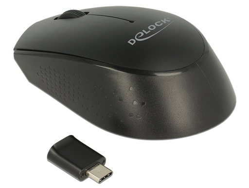 Questo mouse wireless Delock è collegato al computer tramite il ricevitore USB Type-C™ compatto. Durante il trasporto può essere collocato in uno scomparto nella parte inferiore del mouse. La tecnologia wireless a 2,4 GHz fornisce una gamma massima di funzionamento fino a 10 metri. Le piccole dimensioni del mouse lo rendono un perfetto compagno di viaggio.