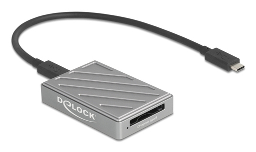 The card reader by Delock can be used for reading and writing CFexpress memory cards. The card reader can be connected to a PC or a mobile device via the USB interface. Thanks to the support of a maximum data transfer rate of up to 40 Gbps, even large amounts of data - such as 8K video recordings or RAW image series - can be transferred extremely quickly. The card reader is therefore ideal for professional users in the photo and video sector.