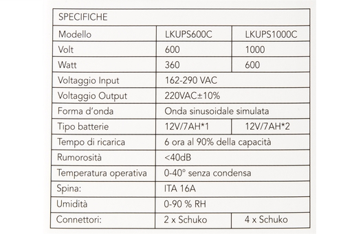 LINK Gruppo Di Continuita' 600va/360w Line Interactive Con   (Carta di Credito Web ) 45,56 € + IVA Aggiungi Prodotto al Carrello
