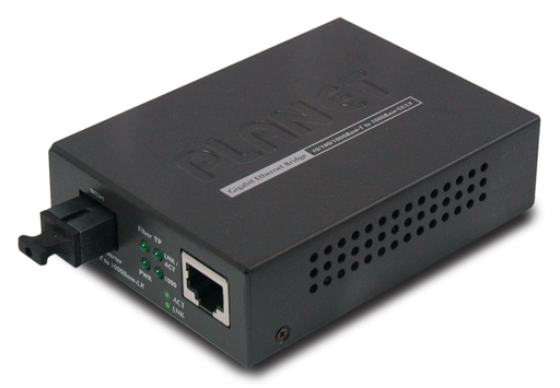 PLANET GT-80x gigabit media converter series extends communication distance with highly Gigabit performance via fiber optic cable. The GT-80x series provides media conversion between 10/100/1000BASE-T and 1000BASE-SX/LX interfaces for various fiber optic applications.