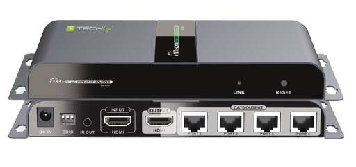 - Distribuisce il segnale audio/video proveniente da una sorgente HDMI a 4 schermi HDMI contemporaneamente utilizzando un cavo di rete Cat.6 o superiore