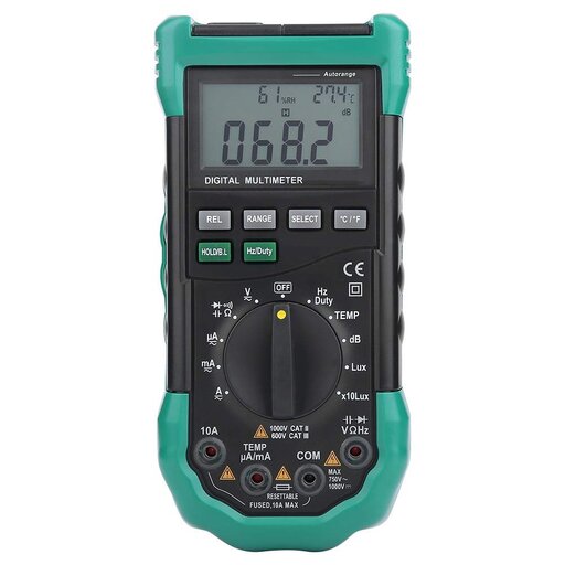 Multimetro digitale con misurazioni ambientali: temperatura, umidità relativa, livello del suono e della luminosità