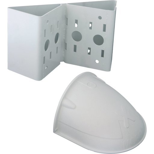 Set consisting of pole mount (MX-OPT-MH) and wall mount (MX-OPT-WH)\nfor D22/D24 IT/Sec and Q22/Q24 Sec - Pole Mount for fastening of Dome wall mount\n- 3 mm stainless steel, white\n- Delivery with 2 stainless steel straps for pole diameters of 60 - 180 mm as well as mounting parts\n- Wall mount is weather-proof (IP65) for protection of D22/D24 MonoDome\n- Covers RJ45 wall outlets\n- Space for expansion modules (battery, UMTS, WLAN, etc.)