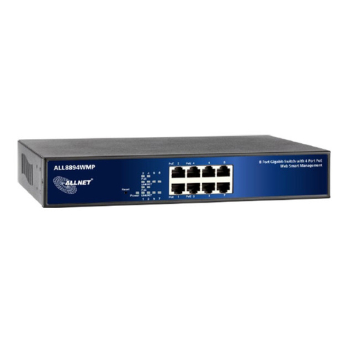 ALL8894WMP is a 8-port 10/100/1000M with 4 PoE+ Web- Managed Ethernet Switch that is designed for medium or large network environment to strengthen its network connection. Including rack-mount brackets, the 11" size fits into your rack environment. It is a superb choice to boost your network with better performance and efficiency. IEEE 802.3at Power over Ethernet (PoE) ports\nALL8894WMP features 4-port PoE IEEE 802.3at supplying up to 30 watts per port. This product can convert standard 100~240V/AC power into low-voltage DC that runs over existing LAN cable to power up IEEE 802.3at compliant network accessories. By adding ALL8894WMP to existing networking, installing networking products such as Access Points and IP cameras can be easily managed and set up. Wireless device deployments are easily located with available power outlets and network administrators don’t need to use heavy AC power adapters anymore. High-Speed Networking and Jumbo Frames Support\nALL8894WMP provides an excellent solution for expanding your Gigabit network. By Gigabit speed, this product provides high flexibility and high bandwidth connectivity to servers, workstations and other attached devices. It enables you to save time transferring large files. In addition, it also supports Jumbo Frames 9.6K to improve network utilization of large file transfers. Exceptionally Smart\nALL8894WMP provides Smart features that are ideal for simple QoS/CoS applications and basic monitoring tools to improve network efficiency. Its security and management features, such as VLAN (IEEE 802.1Q VLAN tagging and port-based VLAN) to secure your network. Through a Web-based interface, an administrator can set up VLANs to segregate traffic, QoS to prioritize mission-critical data and link aggregation to create fat traffic pipelines. In addition, ALL8894WMP also supports Rapid Spanning Tree to detect and break unintentional cabling loops within the network. All of these features offer extra protection on the network edge. Best of all, the password-protected configuration interface can be accessed remotely. Advanced Security\nALL8894WMP supports IEEE802.1x port authentication. Enterprise-Class Web Management Utility\nWith graphic user interface, it’s easy to manage, plan and configure ALL8894WMP Gigabit Web Smart Ethernet Switch. This utility provides valuable tools, such as,