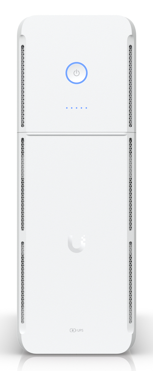 UniFi managed 1kVA uninterruptible power supply with 10 outlets and hot swappable battery, 108Wh, half load (300W) runtime of 7 minutes, UniFi Alarm Manager ready and NUT support for 3rd party devices.