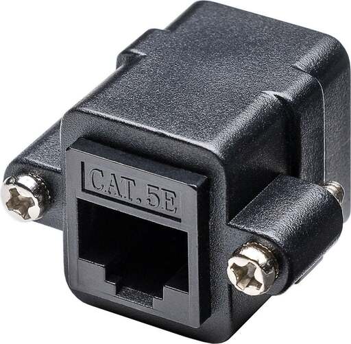 Adattatore in grado di estendere una connessione di rete, che può essere utilizzato per collegare vari dispositivi. La porta femmina può essere fissata con due viti, ad esempio ad una staffa dello slot, una canalina o una custodia con la corrispondente apertura. Può essere utilizzata per installare un jack RJ45 in una posizione facilmente accessibile.