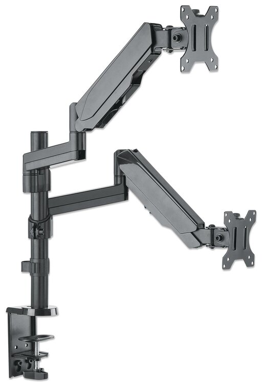 • Supporto universale per doppio monitor con molla a gas