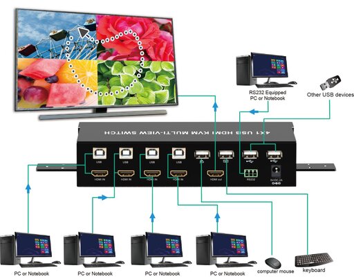 - Supporta la condivisione di 4 ingressi HDMI e una sola uscita