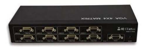 Splitter Matrice VGA 4 ingressi 4 Uscite con audio, permette con estrema versatilità di gestire gli ingressi e le uscite video invertendo le connessioni eliminando i fastidiosi spostamenti di cavi.Supportando anche l audio è particolarmente adatto per tutte le applicazioni multimediali per presentazioni sale conferenze, scuole, alberghi etc. Ogni ingresso è accessibile o dal telecomando ad infrarossi con i pulsanti di commutazione del pannello frontale o anche dalla porta RS232.