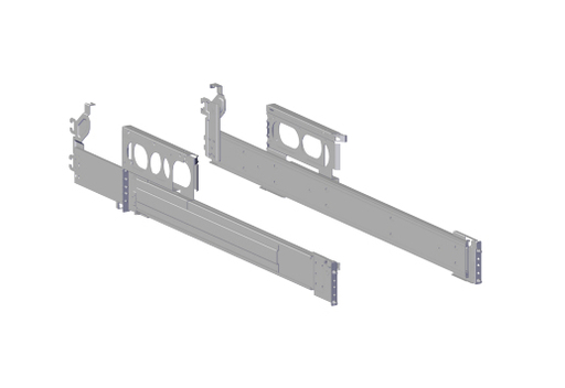 The Ultrastar Data102 is installed into a rack using a toolless-attach rail system. Each rail is a two-piece assembly, with one rail that attaches directly to the chassis (inner rail) and another (outer rail) that attaches to the rack. The inner rail comes nested inside the outer rail and can be accessed by sliding it out of the outer rail. The outer rails attach to the rack and receive the chassis to support it inside the rack. The outer rails attach to vertical rack rails, which should be set between 32 in.-36 in. The toolless design allows an installer to attach the rails to a rack without any tools, which simplifies installation. Once they are attached, they can be secured with the included M5 screws and washers.