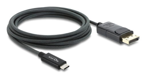 This cable by Delock enables the connection of a DisplayPort monitor to a device with USB-C or Thunderbolt 3 port, such as a MacBook or a Chromebook. The interface has to support the DisplayPort Alternate Mode. The coaxial cable is very flexible and easy to handle due to its small diameter.