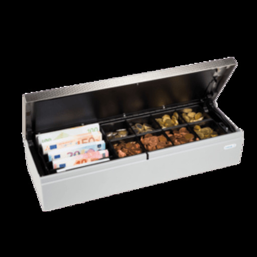 Sportello cassa, Coperchio ribaltabile, Dimensioni (BxHxT): 484,6x103x168mm, 5 scomparti per banconote (verticale), 8 scomparti per monete, Attacco alla stampante di cassa, 24 V, 8,4kg, Colore: grigio chiaro