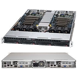 Two systems (nodes) in a 1U form factor. Each node supports the following: