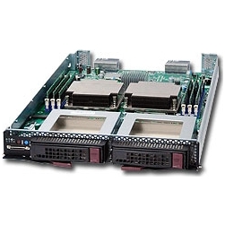 Processor Blade SBI-7126T-T1E (Black) - Dual Intel 5500 series Xeon Quad/Dual-Core, with QPI up to 6.4 GT/s and 95W - Intel 5500 (Tylersburg) Chipset - Up to 48GB DDR3 1333/1066/800MHz ECC Registered DIMM / 12GBUnbuffered DIMM - Intel 82576 Dual-Port Gigabit Ethernet - 2 x 3.5" Hot-Plug SAta Drive Trays - Integrated Matrox G200eW Graphics - Integrated IPMI2.0 w/ remote KVM and virtual media - Mellanox ConnectX QDR/DDR Infiniband 40/20Gbps or 10GbE support (Optional)