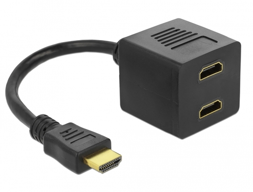 This HDMI adapter by Delock with a cable lenght of approx. 20 cm and gold-plated connectors, enables the connection of two additional HDMI devices.