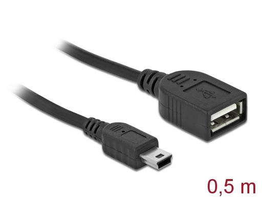 This USB mini cable by Delock enables you to convert the USB mini port of your mobile device into a USB-A female port. Thus you can connect e.g. HDDs or memory sticks with standard USB port to mobile phones, smart phones, tablet PCs etc.