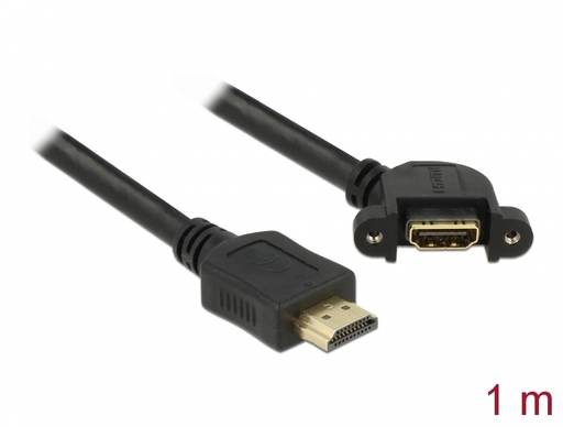 This cable by Delock can be used to extend an HDMI connection and to connect various devices. The female port can be attached with two screws, e.g. to a slot bracket, a cable duct or an enclosure with the corresponding opening. In this way, it is possible to install a HDMI connector in an easily accessible position.