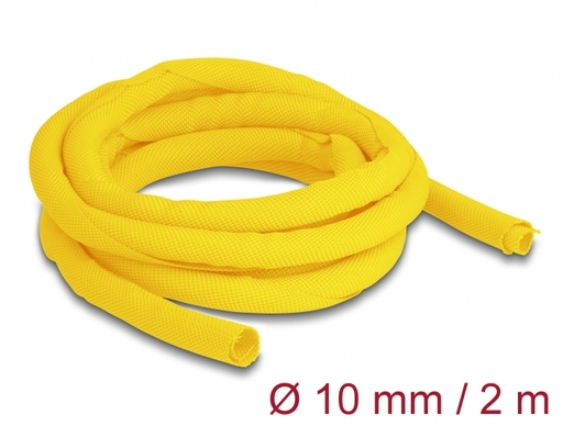 This woven sleeve by Delock can be used to bundle exposed cables, electrical tubes or wires to protect them from dirt or damage. It consists of special continuous fibres (monofilament and multifilament) and thus offers increased flame resistance and abrasion resistance.