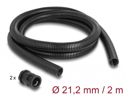 This set by Delock consists of a cable protection sleeve and a conduit fitting. The gland can be simply attached to the corrugated protective sleeve and provides a waterproof seal to the enclosure for passing cables and electrical wires.