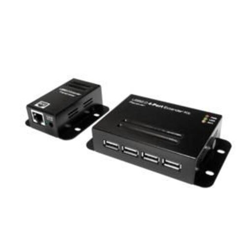 Extender USB.2.0 a 4 porte, in grado di inviare segnali USB attraverso un cavo Cat.5/5e/6 fino a 50 metri a velocità di trasmissione dati High Speed (480 Mbps), Full Speed (12 Mbps) e Low Speed (1,5 Mbps ). Basta collegare il cavo LAN nel connettore RJ45 da installare e non è necessaria alcuna configurazione.
