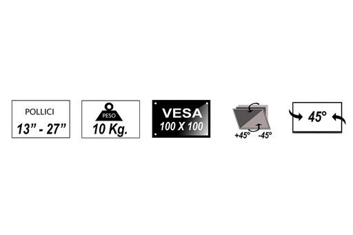 Staffa supporto da tavolo con ganascia. Supporta video da 13 a 27" fino a 10 kg di peso. Pu= ruotare di 360¦, per supportare la modalitÓ panorama durante la visione. Permette di regolare l'inclinazione e della rotazione del monitor. Si pu= quindi regolare l'angolo di visione a seconda delle esigenze. Si pu= regolare l'altezza verticale del monitor fino all'altezza desiderata. E' un'ottima soluzione per l'esigenza di un supporto con fissaggio al tavolo di un monitor. Per organizzare i cavi lungo l'asta ci sono delle clip apposite. In acciaio, molto robusto. Dimensione prodotto: 116x120x550mm Supporta monitor standard VESA: 100x100 e 75x75 Inclinazione verticale: +45¦~-45¦ Inclinazione orizzontale: +45¦~-45¦ Regolazione livello: +180¦~-180¦ Rotazione: +180¦~-180¦ Altezza: 450mm Per tavoli di spessore: 10mm-88mm. Manuale in italiano.